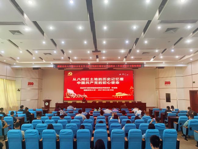 4月30日,新葡京官网在禧强楼学术报告厅举办第二场辅导员党史学习教育暨新任辅导员思想政治工作素养提升专题培训。学工部相关负责人、部分学院党委副书记、辅导员等90多人参加。