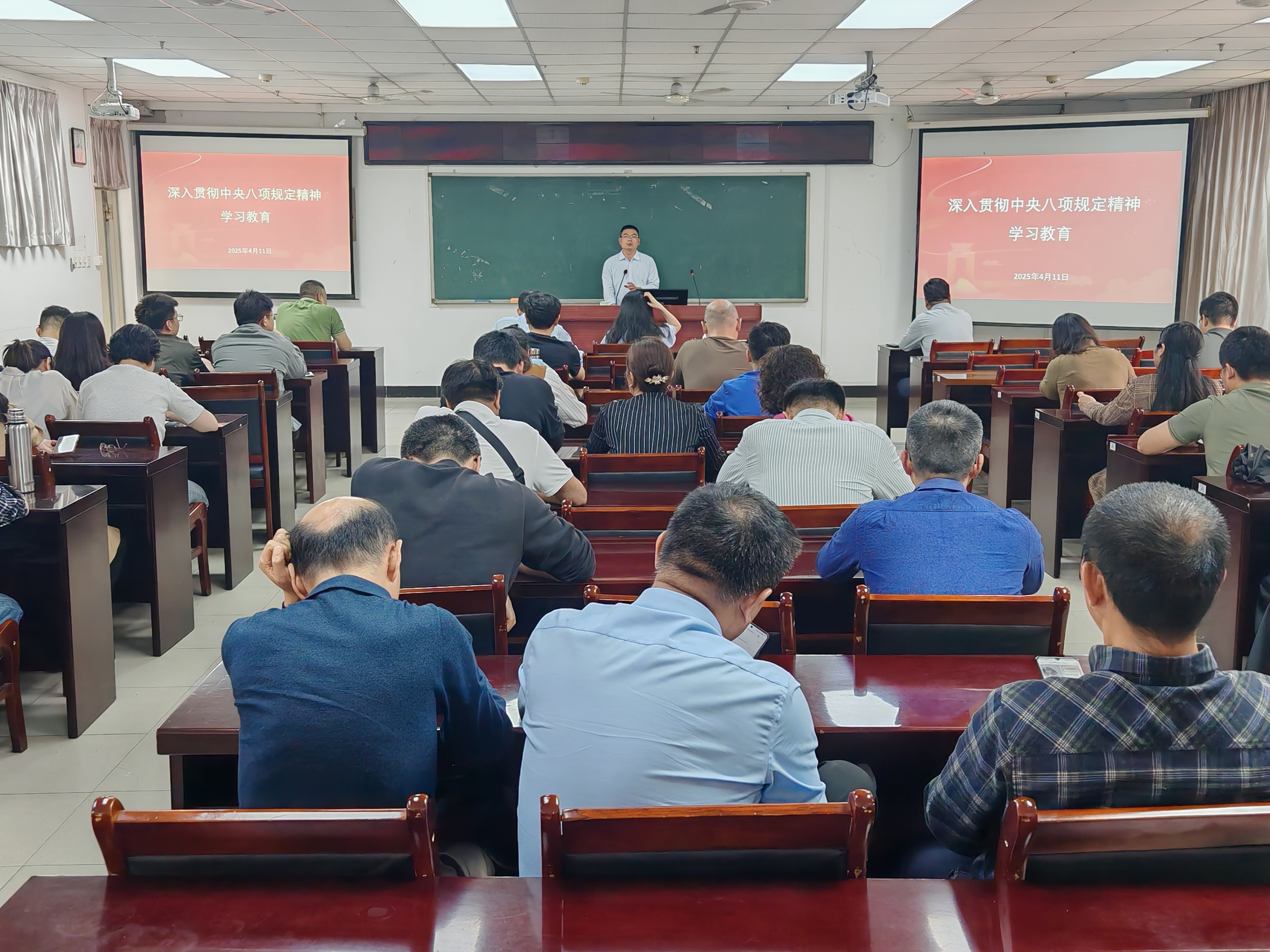 会上,全体教职工集中学习了中央八项规定及其实施细则,并通报了高校系统中违反中央八项规定精神的典型案例进行警示教育。