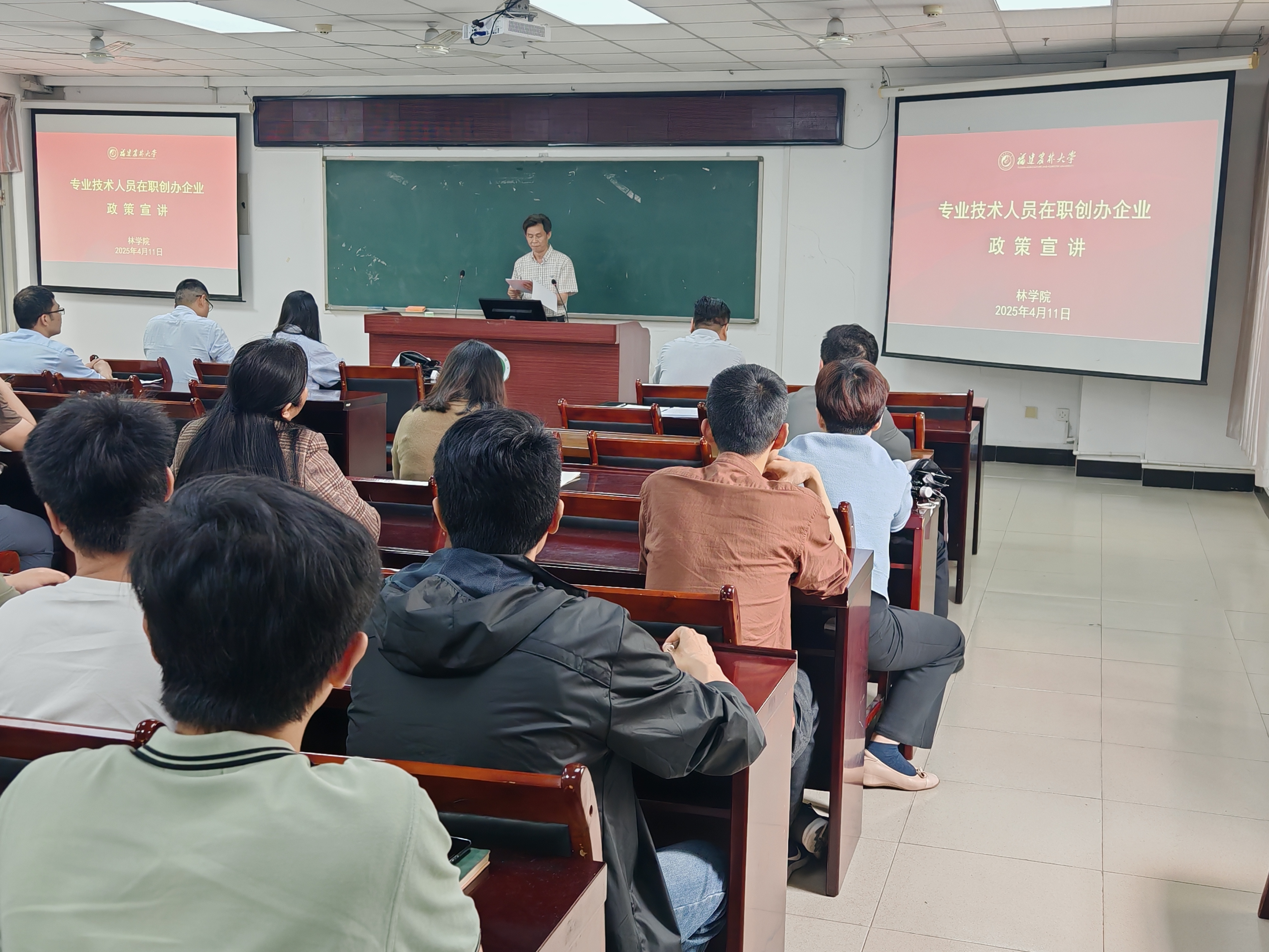 会议就近期林学学科建设、南平生态定位站建设相关工作进行布置,同时对专业技术人员在职创办企业的相关政策进行宣讲解读。