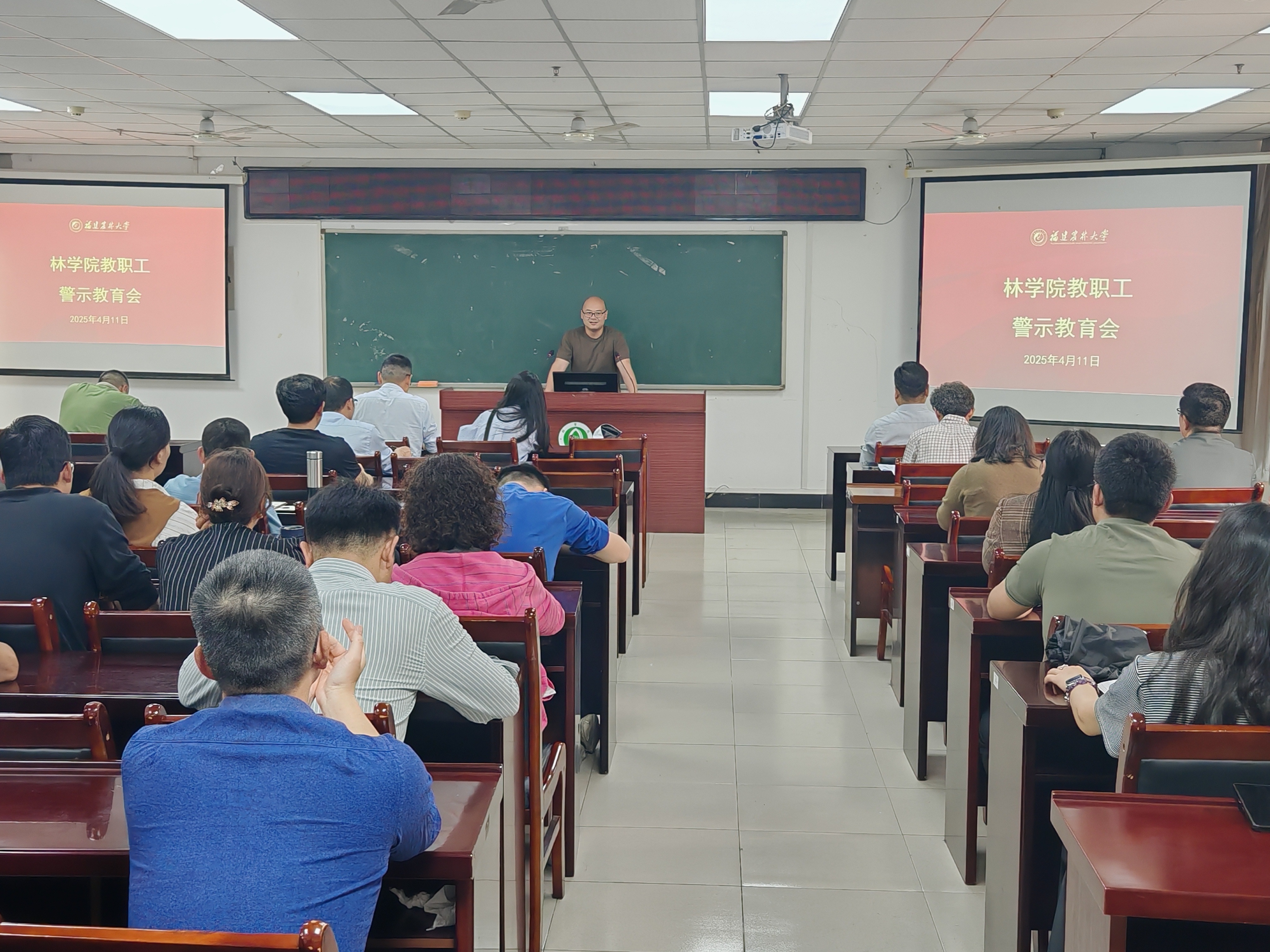 4月11日下午,林学院在田家炳楼C215会议室召开全体教职工大会,专题学习中央八项规定精神,并开展警示教育。会议由学院党委副书记(主持工作)余坤勇主持,全体教职工参会。