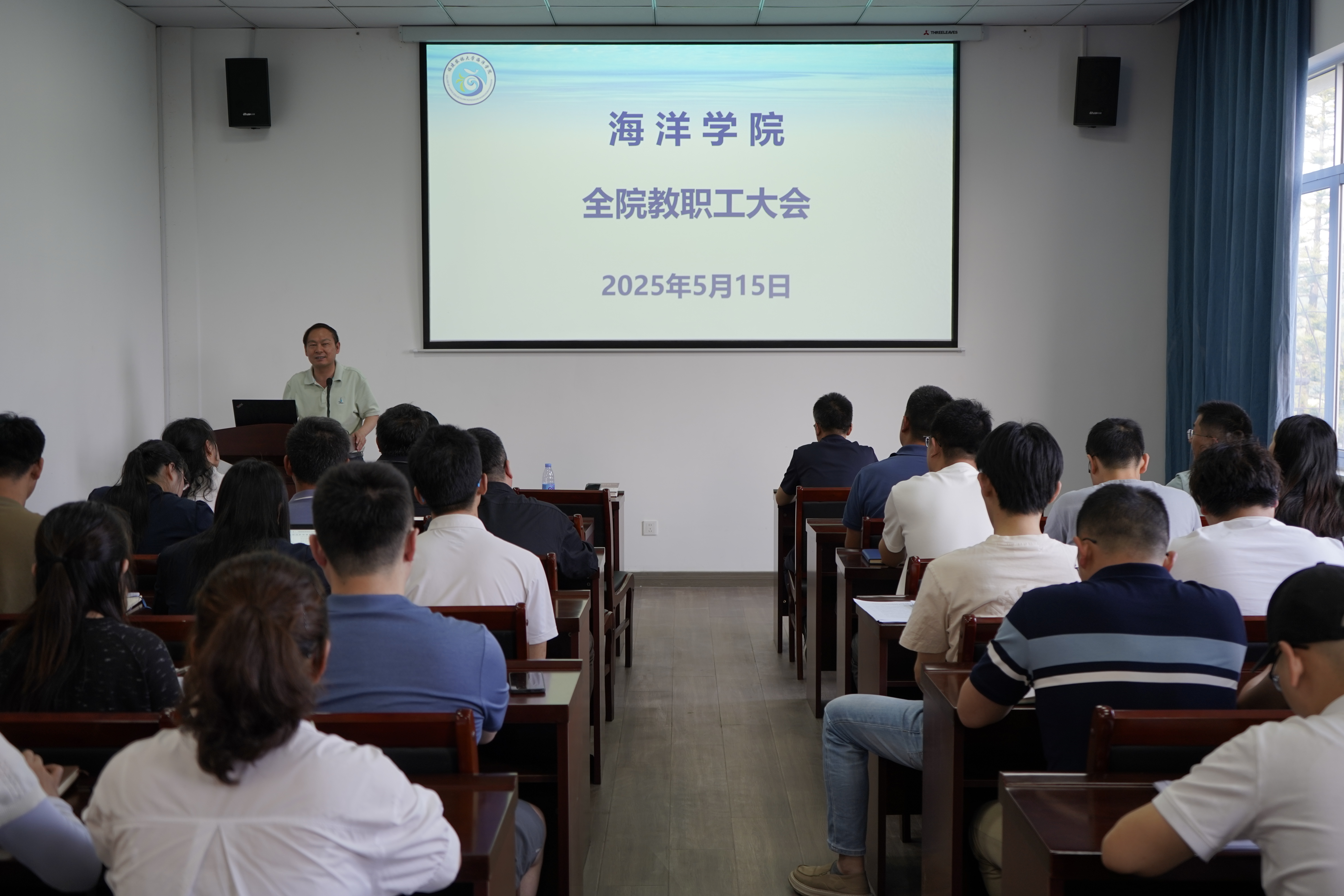 5月15日下午,海洋学院在601会议室召开全院教职工大会暨学院党委理论学习中心组学习(扩大)会,全体教职工参加。会议由学院党委副书记(主持工作)郑亚凤主持。