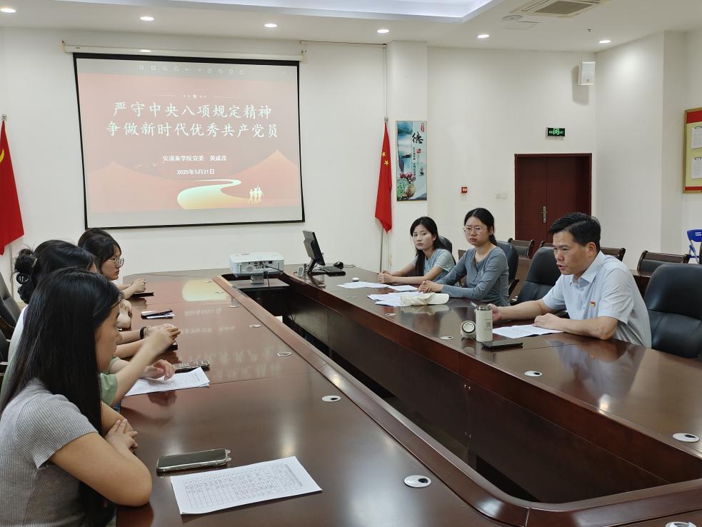 为深入贯彻中央八项规定精神学习教育,提高学生党员的思想政治素质,为毕业班党员扣好离校前的第一粒扣子,安溪茶学院党委书记黄成茂应邀为商务经济系学生党支部全体党员讲授“严守中央八项规定精神 争做新时代优秀共产党员”主题党课。