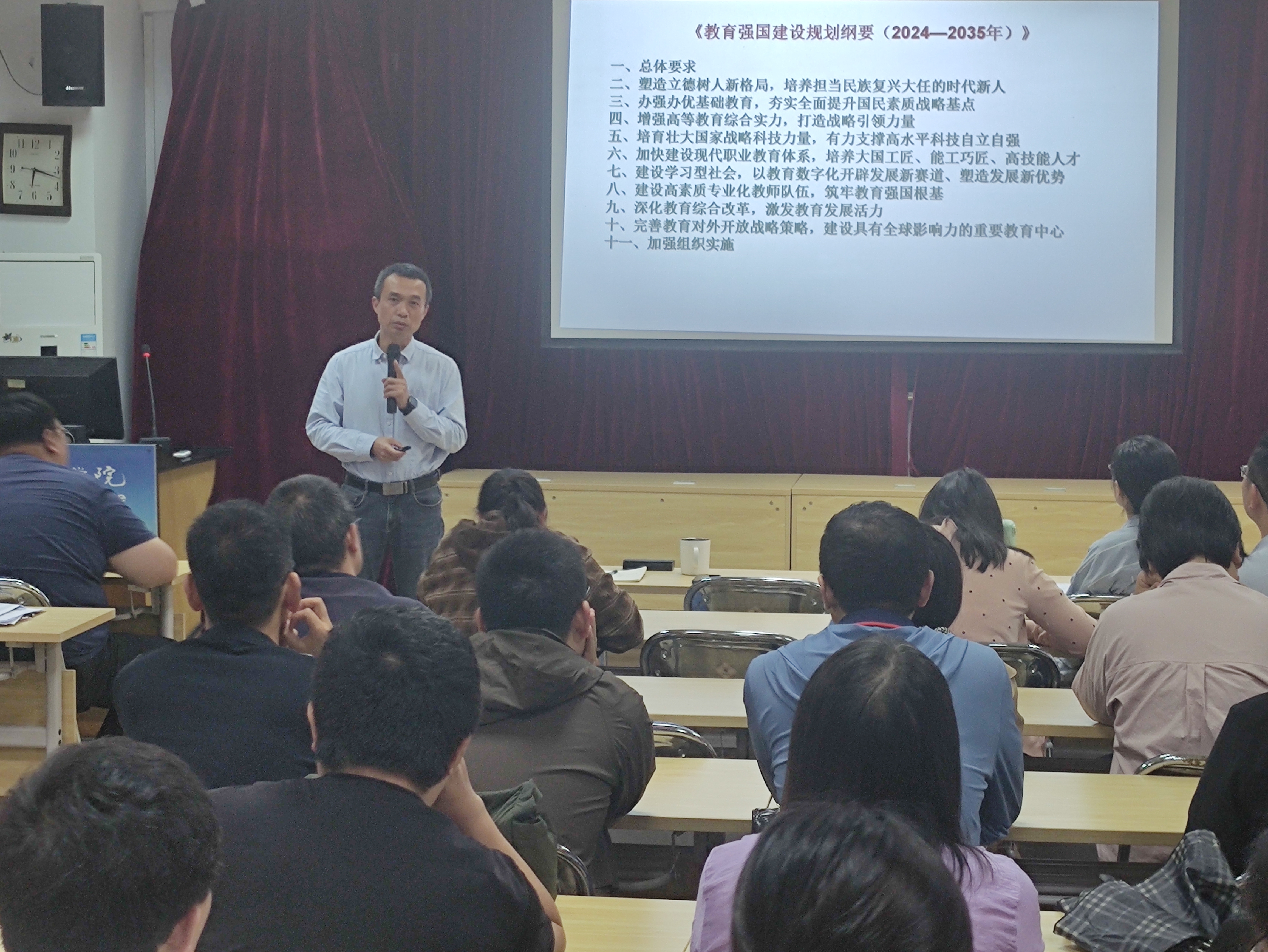 余顺兴组织全体教职工开展时政理论学习,学习《教育强国建设规划纲要(2024—2035年)》、习近平总书记对精神文明建设工作作出的重要指示、习近平总书记在庆祝中华全国总工会成立100周年暨全国劳动模范和先进工作者表彰大会上的重要讲话精神和《求是》杂志发表习近平总书记重要文章《锲而不舍落实中央八项规定精神,以优良党风引领社风民风》。