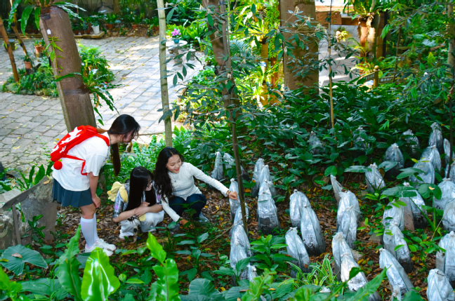 学生观察金线莲生长情况