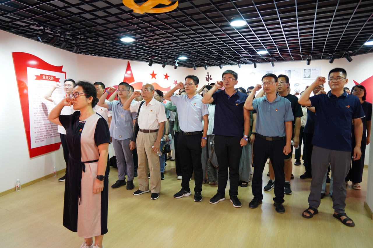 活动伊始,在学院党委书记陈月霄的带领下,全体党员面对党旗,重温入党誓词,在铮铮誓言中重忆入党初心。