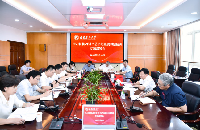 9月22日上午,校长兰思仁在明德楼第二会议室主持召开学习贯彻习近平总书记重要回信精神专题部署会,副校长唐振鹏参加会议。
