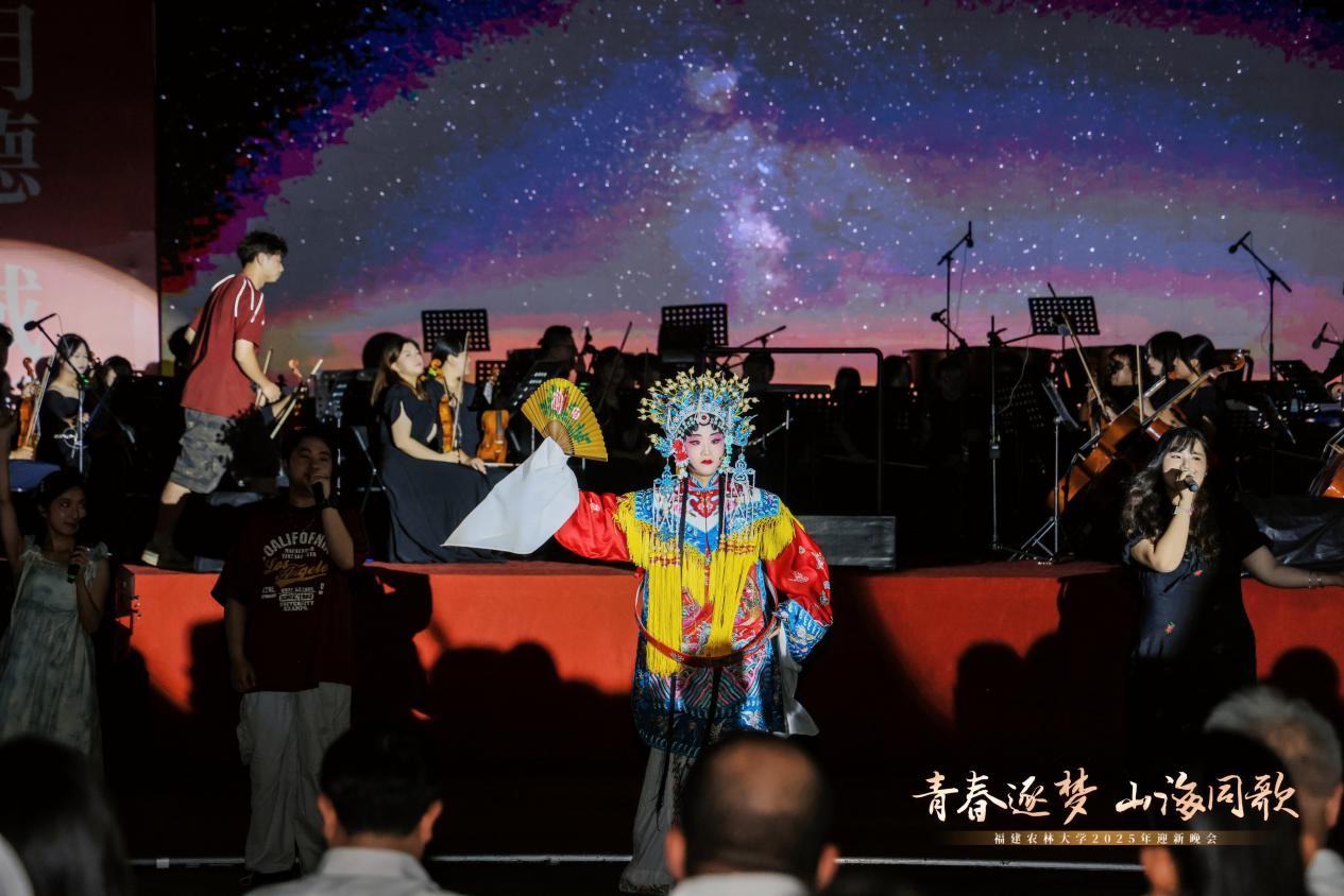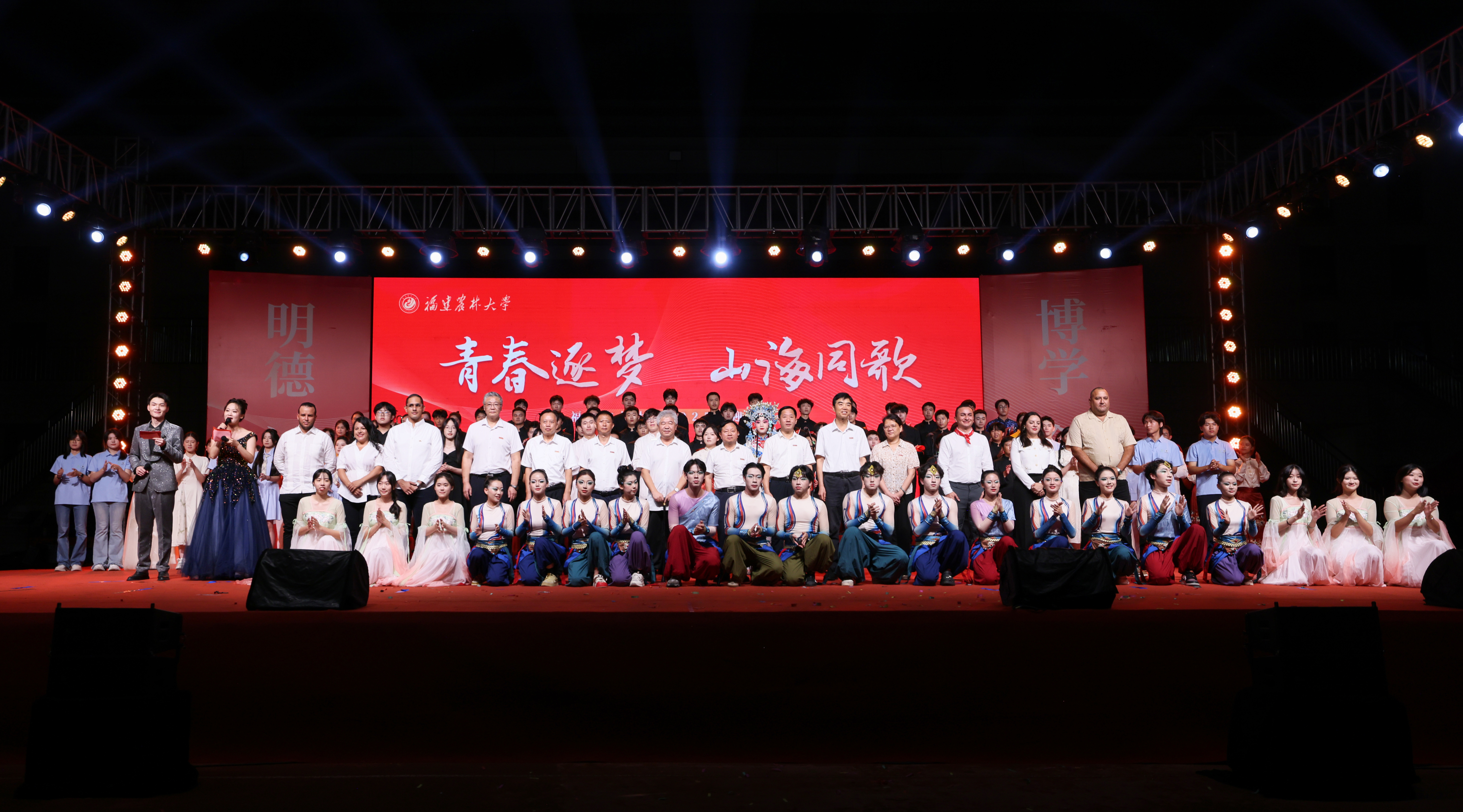 9月21日晚,新葡的京集团350vip8888官网“青春逐梦 山海同歌”2025年迎新晚会在欢快节奏、激昂奔放的民乐中拉开序幕,校党委书记赖海榕,校长兰思仁,校党委副书记陈世奎、曾华平,副校长郑宝东、林庆藩、唐振鹏,校纪委书记(监察专员)陈艳,机关各部门、各学院负责人,校友代表与福州大学城校区全体近3000名新生共同观看演出。本场晚会节目形式多样,内容丰富多彩,充分展现新葡京官网深厚的历史底蕴和多彩的校园生活,彰显福农人自强不息的精神力量和朝气蓬勃的精神风貌,为来自五湖四海的新生带来一场高雅的视听盛宴。