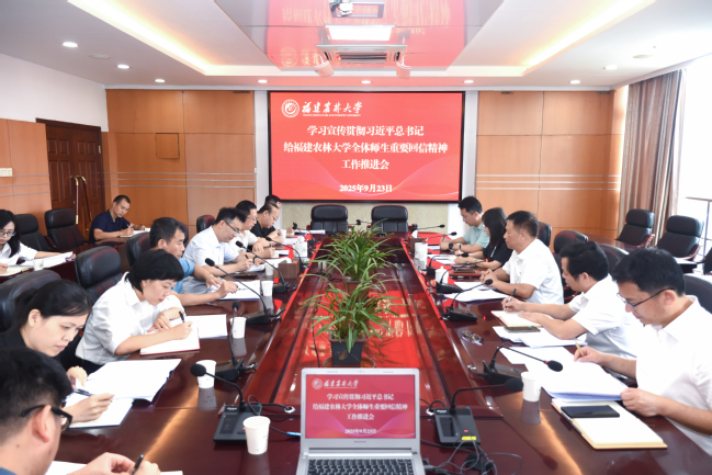 9月23日上午,校党委副书记陈世奎在福州仓山校区明德楼第二会议室主持召开学习宣传贯彻习近平总书记给新葡的京集团350vip8888官网全体师生重要回信精神工作推进会,校学习宣传贯彻重要回信精神工作领导小组办公室成员参加。