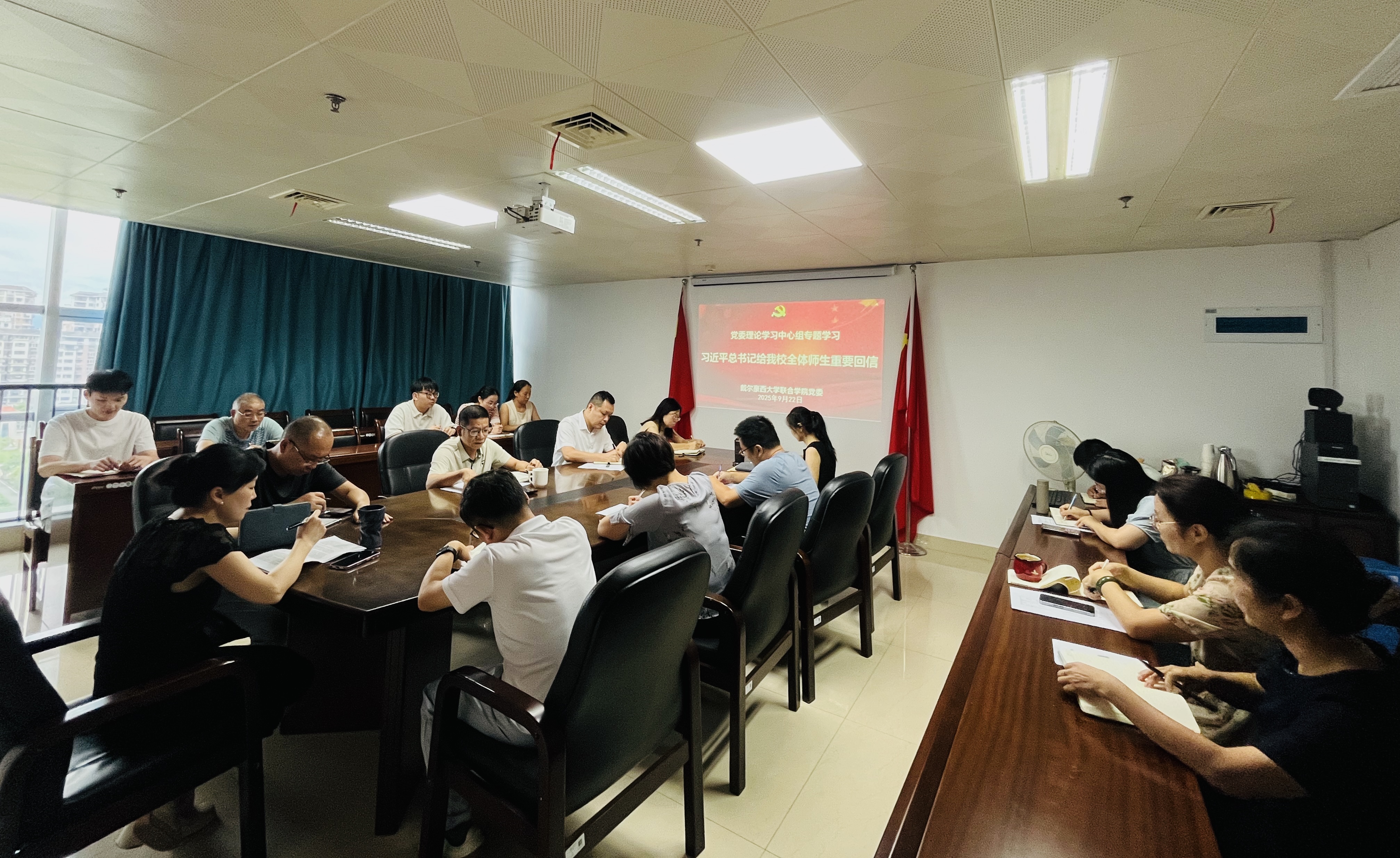 9月22日,戴尔豪西大学联合学院党委召开理论学习中心组(扩大)会议,专题学习贯彻习近平总书记给新葡的京集团350vip8888官网全体师生的重要回信精神。学院党政领导班子成员、党委委员、科级干部、辅导员及全体行政人员参加学习,院党委书记林平主持学习会。