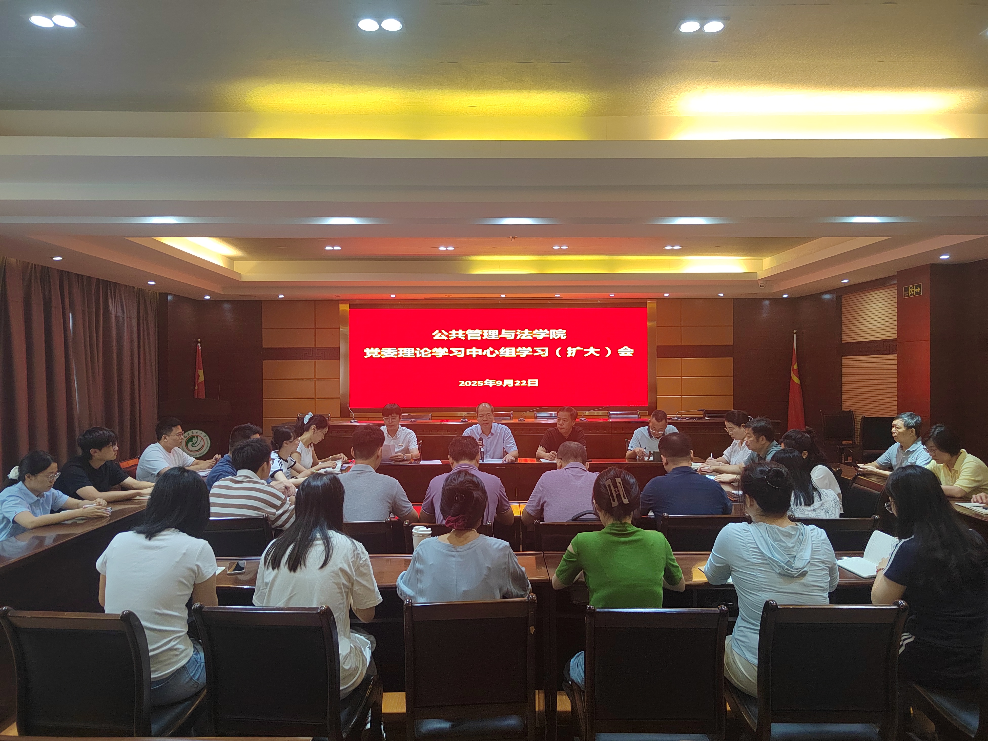 9月22日上午,公共管理与法学院党委理论学习中心组在学院三楼报告厅召开学习(扩大)会议,深入学习贯彻习近平总书记给新葡的京集团350vip8888官网全体师生的重要回信。学院党委理论学习中心组成员、科级干部、全体党支部书记参加会议。学院党委书记蓝天水主持会议。