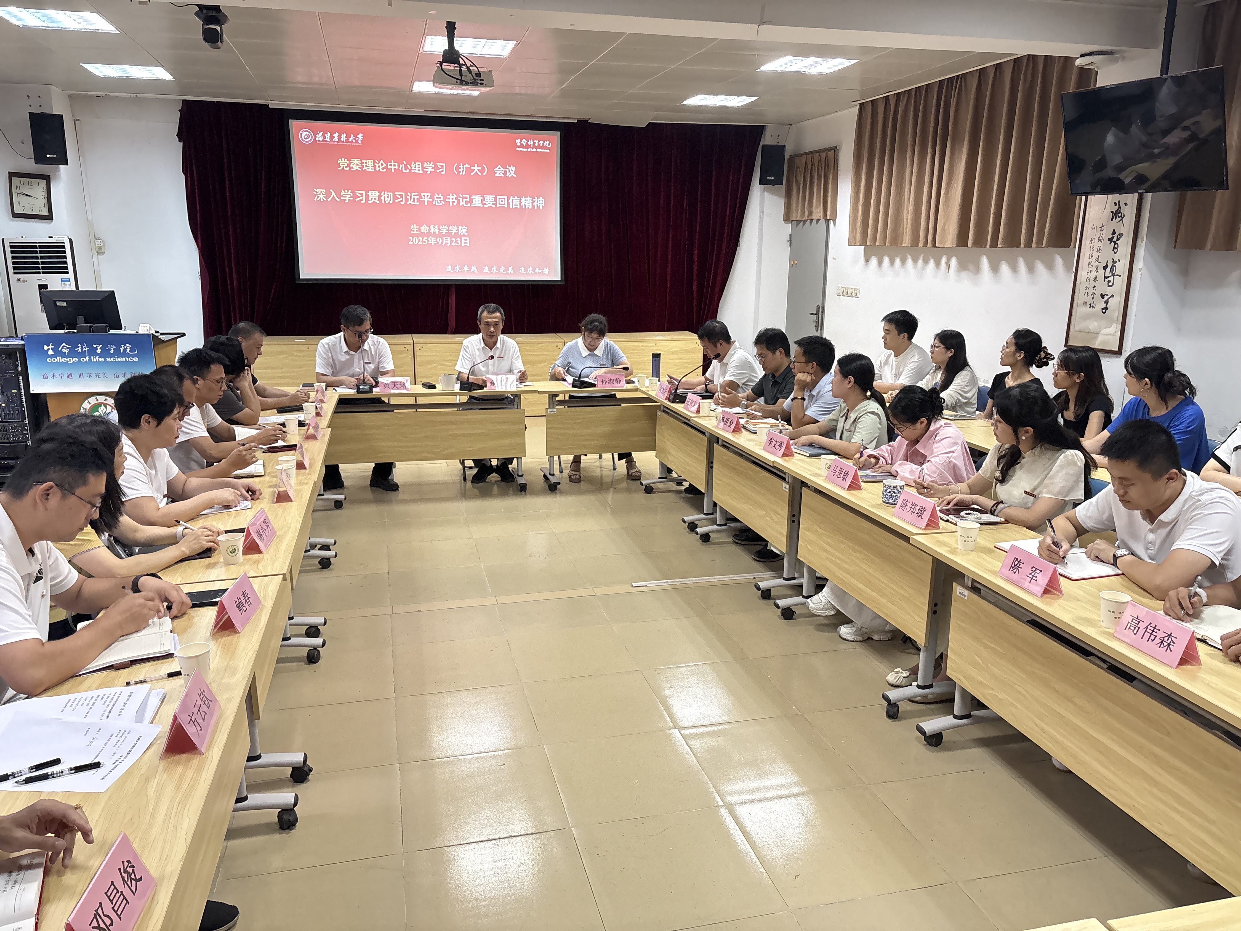 9月23日下午,生命科学学院党委召开理论学习中心组学习(扩大)会议,专题学习研讨习近平总书记给新葡的京集团350vip8888官网全体师生的重要回信。会议由学院党委书记余顺兴主持会议,院党委理论学习中心组成员、科级干部、系主任、高层次人才代表、政工干部、各党支部书记和学生代表参加。
