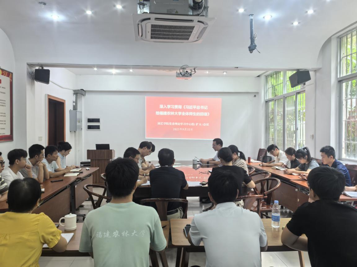 9月22日,园艺学院召开党委理论学习中心组扩大会,专题学习贯彻习近平总书记给新葡京官网全体师生的重要回信精神。学院党委理论学习中心组成员、党政班子成员、各党支部书记、科级干部、系主任、教师代表及学生代表参加。会议由学院党委书记孙思惟主持。