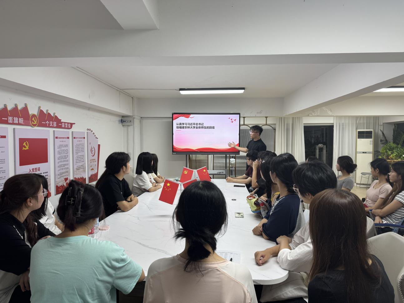 9月23日晚,经济与管理学院习近平总书记关心指导新葡的京集团350vip8888官网建设发展专题展厅扶摇讲解队认真组织学习习近平总书记给新葡的京集团350vip8888官网全体师生的重要回信,深入领会回信中关于深耕“三农”、培养高素质农林人才、服务乡村振兴、建设农业强国的重要指示精神,为将重要指示精神融入展厅讲解工作、践行强农兴农使命奠定坚实思想基础。