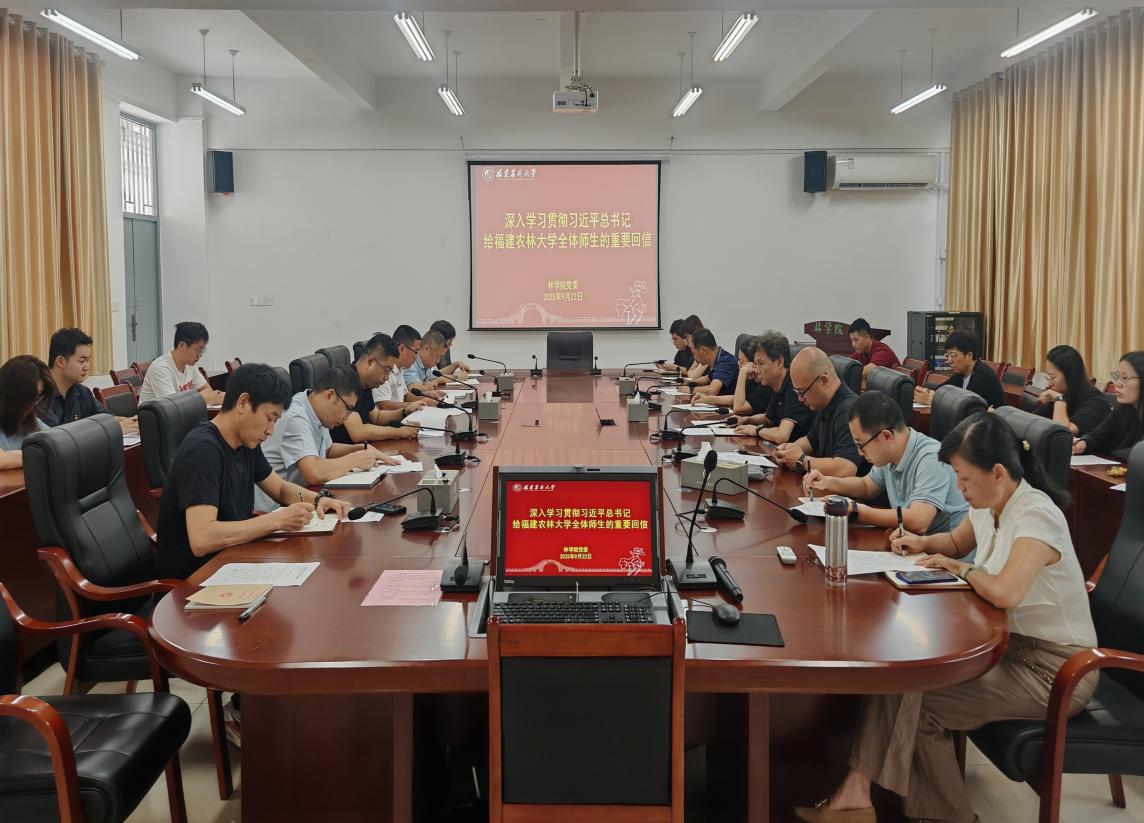 9月22日,林学院党委召开理论学习中心组学习(扩大)会议,专题学习研讨习近平总书记给新葡的京集团350vip8888官网全体师生的重要回信。学院党政领导班子成员、党支部书记、各系主任、优秀教师代表、科级干部及辅导员共计28人参加会议。会议由学院党委副书记(主持工作)余坤勇主持。