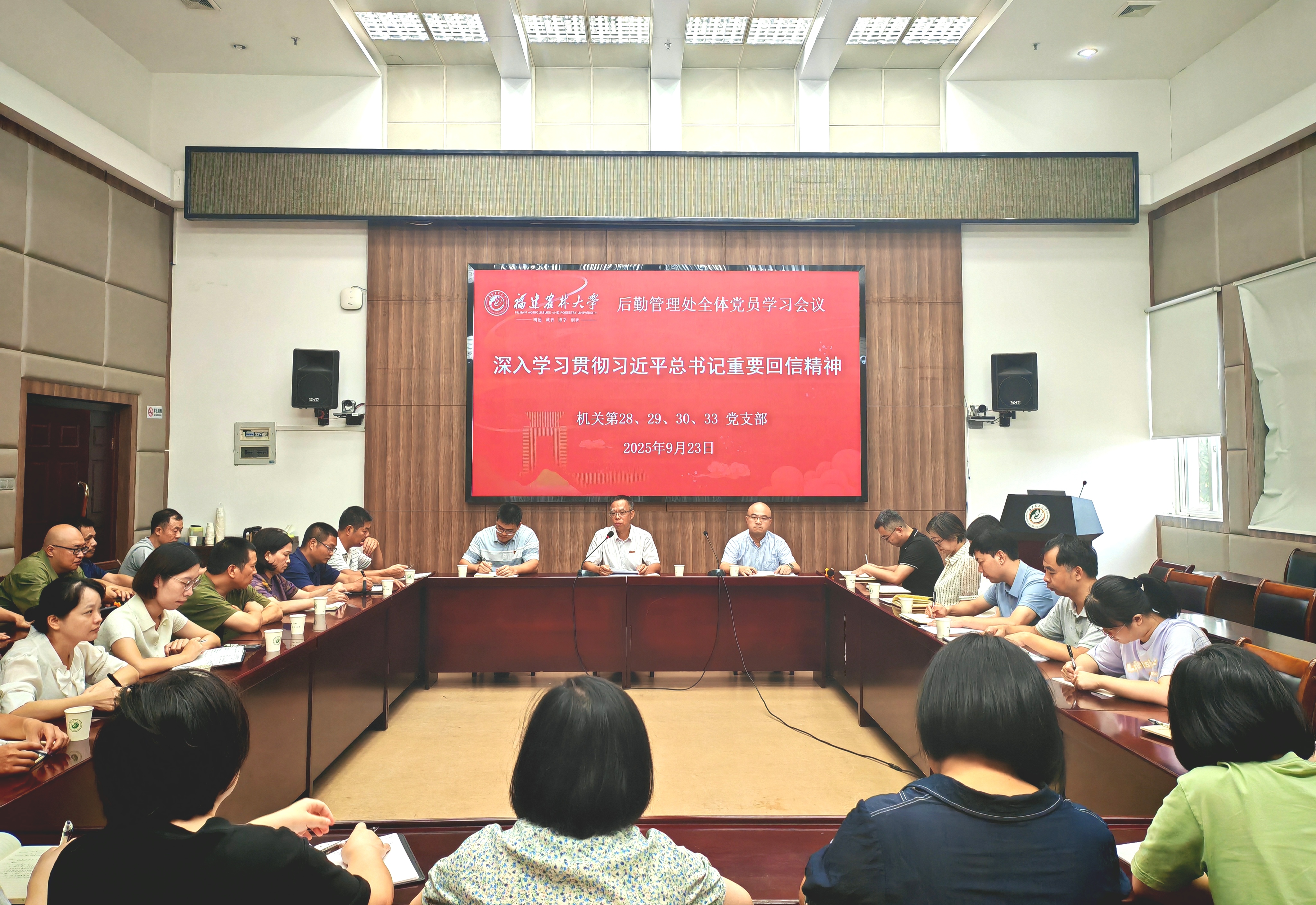 9月23日,后勤管理处在明德楼龙岩厅召开专题学习会,深入学习贯彻习近平总书记给新葡京官网全体师生的重要回信精神。后勤处全体党员参加学习会,会议由后勤管理处处长、机关第28党支部书记曾海滨主持。