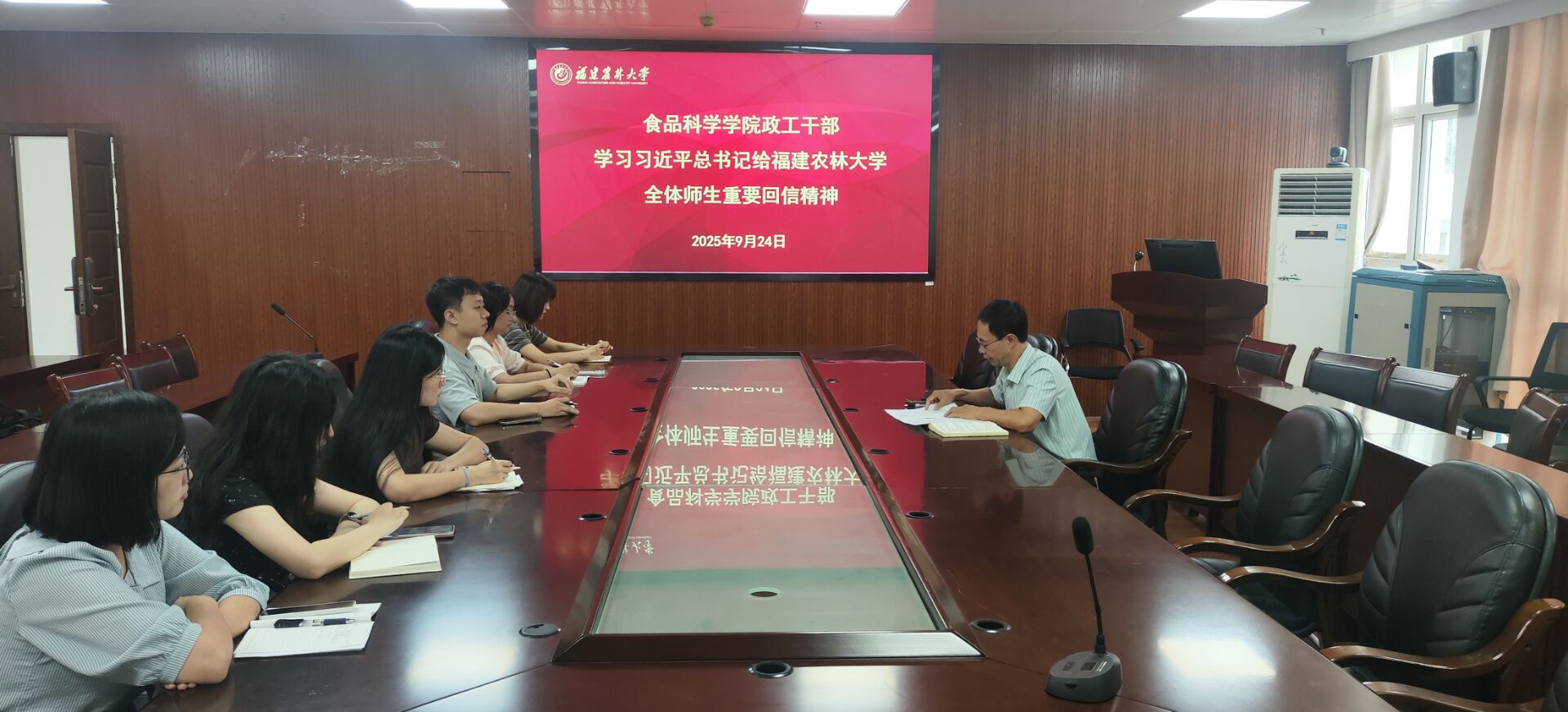 9月24日,食品科学学院召开政工干部会议,专题学习研讨习近平总书记给新葡的京集团350vip8888官网全体师生的重要回信。学院全体政工干部参加,会议由学院党委副书记吴有平主持。
