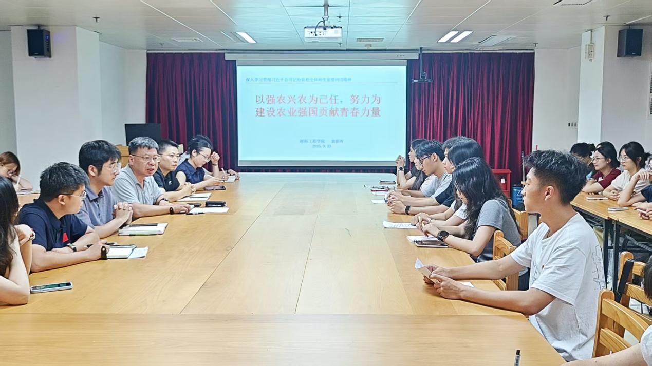 为深入学习贯彻习近平总书记给新葡的京集团350vip8888官网全体师生的重要回信精神,推动重要回信精神在学院落地生根、见行见效,近日,材料工程学院领导班子深入各系所、科研团队、党支部,面向全体师生开展专题宣讲,在深学细悟笃行中汲取思想伟力,以实际行动服务乡村振兴,建设农业强国。