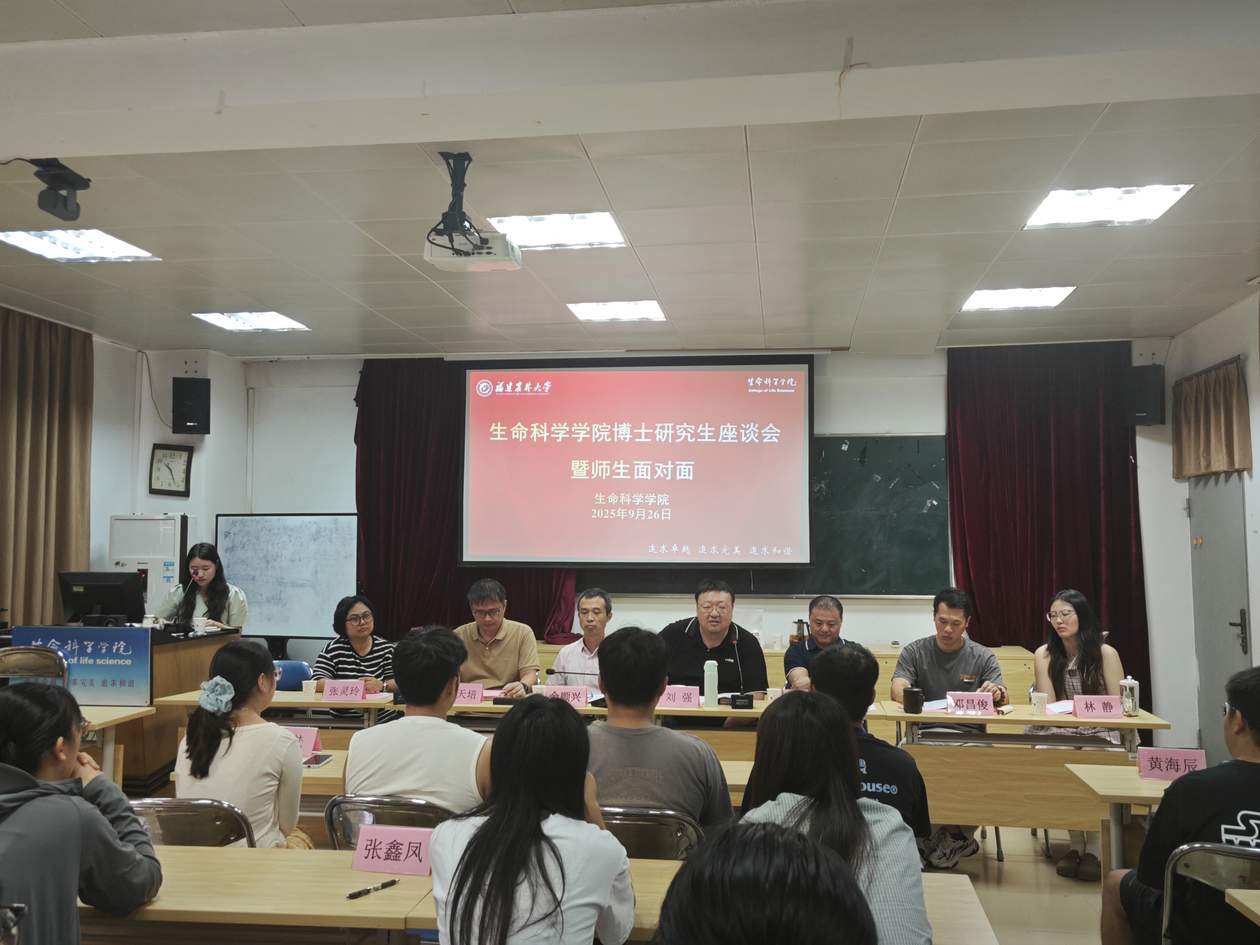 为进一步深入学习习近平总书记给新葡的京集团350vip8888官网全体师生重要回信精神,推动学院博士研究生教育高质量发展,了解博士生在学习、科研、生活中的实际需求,引领博士研究生群体坚定理想信念,9月26日上午,生命科学学院举行25级博士研究生师生面对面活动;学院党委书记余顺兴,副书记刘强,副院长黄天培,教授委员会主任林向民、秘书张灵玲及研究生辅导员出席本次活动;座谈会由辅导员李文秀主持。