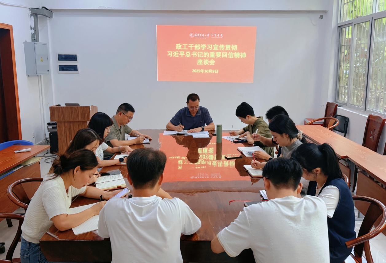 10月9日,园艺学院在园艺楼109会议室组织召开政工干部专题学习座谈会,专题学习宣传贯彻习近平总书记给新葡的京集团350vip8888官网全体师生的重要回信。学院党委书记孙思惟主持会议,全体政工干部参会。