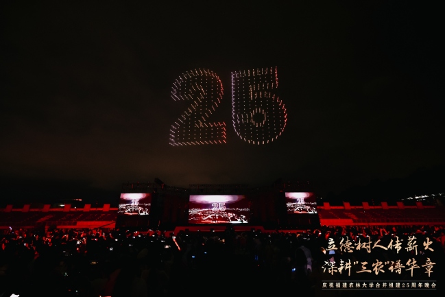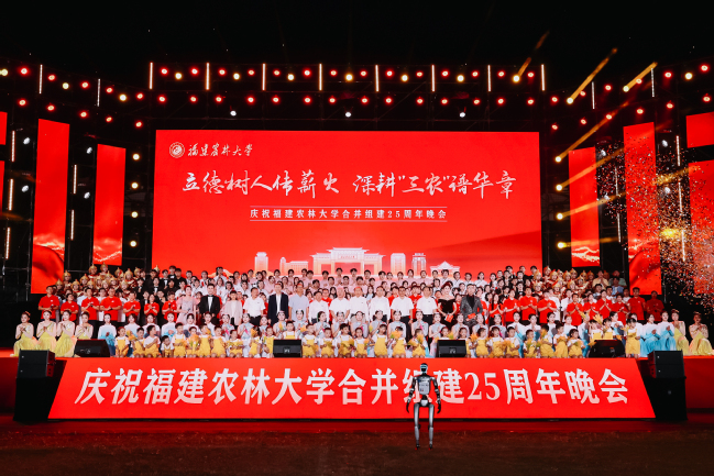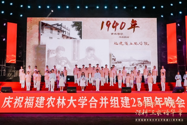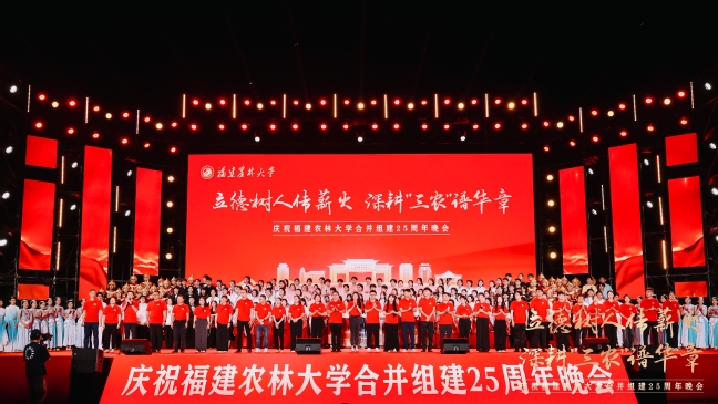 晚会尾声,从2000级到2025级各年级的25位校友代表与全体演职人员一同登台,齐声高唱新葡的京集团350vip8888官网校歌。熟悉的旋律激荡在每一位福农人的心中,将晚会气氛推向情感的高潮,也圆满落下帷幕。这场晚会,既是对辉煌过往的深情回眸,更是向崭新未来吹响的奋进号角。全体新葡的京集团350vip8888官网师生将带着这份荣耀与感动,牢记习近平总书记殷殷嘱托,继续深耕“三农”,发挥特色优势,培养更多高素质农林人才,把更多好技术送到田间地头,为推进乡村振兴、建设农业强国作出更大贡献。