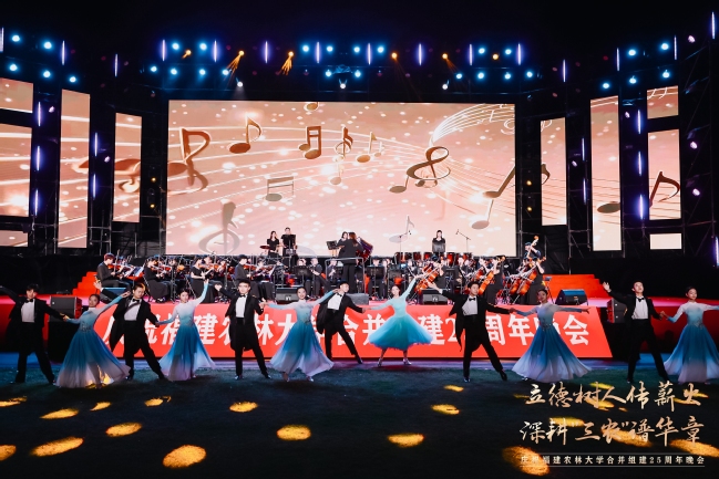 25载感恩奋进,89载薪火相传。10月20日晚上,在新葡的京集团350vip8888官网福州仓山校区敬辉体育场,“立德树人传薪火 深耕‘三农’谱华章”——庆祝新葡的京集团350vip8888官网合并组建25周年文艺晚会隆重举行。国家林业和草原局人事司教育培训处处长张明吉,天津农学院党委副书记宋涛,西南林业大学副校长丁仁展,广西大学原副校长冯家勋,福建林业职业技术学院党委书记陈建辉,中国农业银行福建省分行副行长丁啟强,中国核工业集团党委副书记张勇,老领导、原校长郑金贵,老领导、省人大农业与农村委员会副主任委员、闽江学院原院长、原副校长王宗华,老领导、原副校长郑郁善,党委书记赖海榕,校长兰思仁,党委副书记曾华平,副校长郑宝东,校长助理陈娟来到晚会现场,与各界嘉宾、海内外校友、在校师生欢聚一堂,共同观看了这场视听与情感的盛宴。