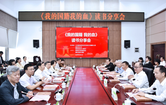 为深入学习贯彻习近平总书记在纪念中国人民抗日战争暨世界反法西斯战争胜利80周年大会上的重要讲话精神,纪念台湾光复80周年,10月25日上午,由中共福建省委党史方志办、福建省退役军人事务厅、福建省台湾同胞联谊会、海峡出版发行集团、新葡京官网联合主办,福建省作家协会、福建人民出版社、福建省革命历史纪念馆、福建省烈士纪念设施保护中心协办的“《我的国籍我的血》读书分享会”在新葡京官网福州仓山校区明德楼武夷厅举行。中共福建省委党史方志办室务会议召集人、主任刘大可,福建省退役军人事务厅党组书记、厅长罗庆春,海峡出版发行集团党委委员、副总经理兼总编辑陈远,省委党史方志办副主任、省作协副主席、《我的国籍我的血》作者钟兆云,省台湾同胞联谊会党组成员、副会长欧阳迪莎,省作协副主席傅翔,福建人民出版社社长林玉平,校党委书记赖海榕、校党委副书记陈世奎出席分享会。