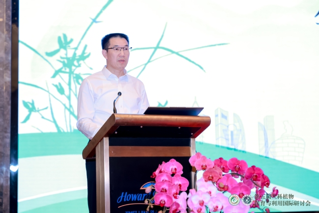 开幕式上,兰思仁代表学校及中国植物学会兰花分会、兰花产业创新联盟对参会领导、嘉宾和师生表示热烈欢迎。他介绍了全校上下深入学习贯彻习近平总书记给新葡的京集团350vip8888官网全体师生重要回信有关情况、学校近年来建设发展情况以及在兰科植物保护与利用领域的研究成果。他指出,兰科植物保护是生物多样性保护的重要内容,其在美丽中国和健康中国建设、生物医药产业、森林四库建设中有广阔应用前景。观赏兰科植物成为年宵花卉的主角,食药用兰科植物已成为林下经济的主栽作物,全产业链产值占林下经济总产值的近15%并快速发展。他提到,新葡的京集团350vip8888官网期待与国内外从事兰科植物保育与利用的同仁深化合作、携手前行。一是共同加强资源保护与利用,系统开展兰科植物种质资源调查、收集与保存,建立全球共享的资源数据库与实物库。二是共同深化基础研究与技术攻关,运用基因组学、合成生物学等前沿技术,揭示兰科植物重要性状形成机制,突破高效繁育等关键技术,创制具有自主知识产权的新品种,创新高效栽培技术体系,尤其要系统集成林下栽培的新技术、新模式。三是共同拓展多功能开发与应用,挖掘兰科植物在食品、药品、美妆、生态修复等领域的多元价值,开发高附加值产品,延伸产业链条,提升产业综合效益。四是共同促进产学研深度融合,构建“基础研究—技术研发—产业孵化”协同创新体系,推动科技成果转化落地,让更多好技术走进田间地头、赋能乡村振兴。