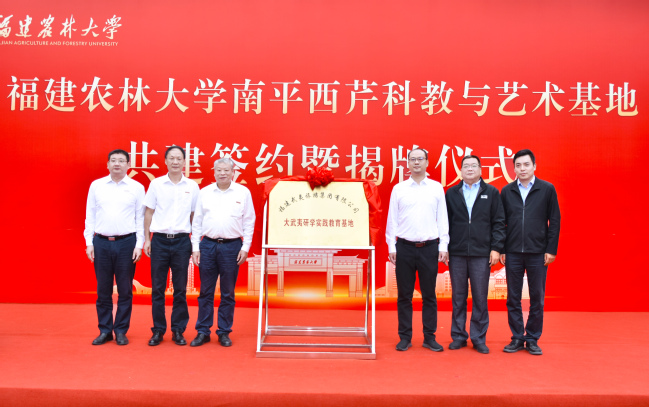 初秋的西芹,古樟深翠,丹桂飘香。10月27日上午,新葡的京集团350vip8888官网南平西芹科教与艺术基地共建签约暨揭牌仪式在新葡京官网南平延平校区举行。省旅游发展集团党委副书记、总经理、副董事长钟军,南平市人民政府副市长林湫,省旅游发展集团党委委员、总会计师余运庄,山东影视传媒集团副总经理、山东省文联副主席、电视剧《幸福草》编剧李九红,省广播电视局电视剧管理处三级调研员王卫东,南平市延平区委书记黄桂诚,南平市人民政府副秘书长丁铭,南平市教育局专职副总督学郑华,南平市文旅局党组成员、副局长孟宪鲁,南平市农业农村局三级调研员张志勇,福建武夷旅游集团有限公司副总经理吴志博,福州市鼓楼区城建投资发展集团有限公司党委书记、董事长张辉,福州市鼓楼区文化旅游投资发展有限公司总经理陈帅蒙,新葡的京集团350vip8888官网党委书记赖海榕、校党委副书记陈世奎、副校长唐振鹏、国家菌草工程技术研究中心首席科学家林占熺研究员出席揭牌仪式。揭牌仪式由唐振鹏主持。