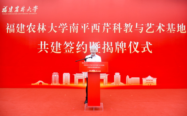 赖海榕代表新葡的京集团350vip8888官网致辞。他简要介绍了南平西芹科教与艺术基地的基本情况和优势特色。西芹基地是一片承载着历史温度的校园。有着近70年的办学积淀,50余栋老建筑修缮改造后,将被赋予满足现代教学、科研、艺术创作与文化交流的多元功能。西芹基地还是一个得天独厚的生态实验室。40亩水田映照天光,10亩果园孕育希望,10亩花园四时花开,两亩咖啡园散发醇香,千亩山林蕴藏无限生机,加之配套建设的高等级森林生态观测站与农业综合观测站,为科学研究提供了绝佳的天然场所。西芹基地更是一个充满无限可能与创造活力的开放平台。科研工作者可以开展农林、生态、环境等多领域研究,教育工作者可以带着学生在山水之间开启自然课堂,艺术创作者则能以青山为幕、老建筑为景,将眼前的灵秀风光与人文底蕴,化作笔下的万千气象。基地还将携手美协、书协及美术院校,推出“艺术驻留计划”,让这里成为艺术创作的沃土。他表示,共建西芹科教与艺术基地,不仅有利于推动校地企强强联合,更是贯彻落实习近平总书记给新葡的京集团350vip8888官网全体师生重要回信精神,为推动乡村振兴、建设农业强国作出更大贡献的切实行动。学校将以此次揭牌为新的起点,加强校地企合作,共同推动基地建设迈上新台阶、实现新发展。他期待,合作运转更加高效,共建常态化沟通协调与资源共享机制,确保各项合作意向能落地、见实效,真正实现优势互补、协同并进;科教融合更加深入,积极推动科研平台、实践课程与师资力量的共享共用,将基地打造为培养创新精神和实践能力的重要摇篮;融合发展更加出彩,持续推动科技、教育、文化、艺术与旅游的跨界融合,将基地建设成为一个内涵丰富、特色彰显、辐射广泛的示范性平台。他还诚挚邀请各界朋友前来开展科研合作、组织研学活动、进行艺术创作,学校将竭诚提供优质服务与保障。
