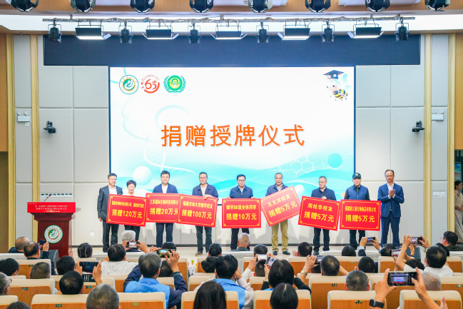 为更好地传承弘扬龚老先生“甘于奉献、勇于探索、勤于耕耘”的崇高精神,蜂学校友与社会各界共同发起设立“龚一飞教育发展基金”,目前已募集善款67.8万元。同时,学院获企业、校友捐赠累计330.8万元,用于环境改造、学术报告厅建设等。会上,举行了“龚一飞教育发展基金”及公益捐赠代表授牌仪式,举行了2025年“神蜂科技奖助学金”发放仪式,激励青年学子勤学笃行、奋发有为。