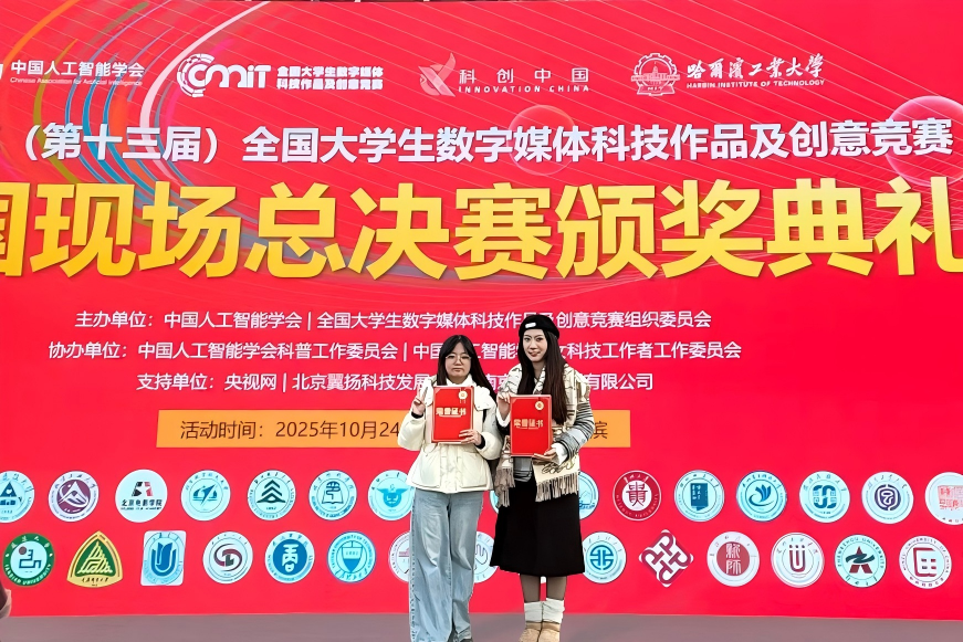 2025年10月24至26日,第十三届全国大学生数字媒体科技作品及创意竞赛全国总决赛于黑龙江哈尔滨市举办。新葡京官网共荣获国奖13项,其中,国家一等奖2项,国家三等奖11项。