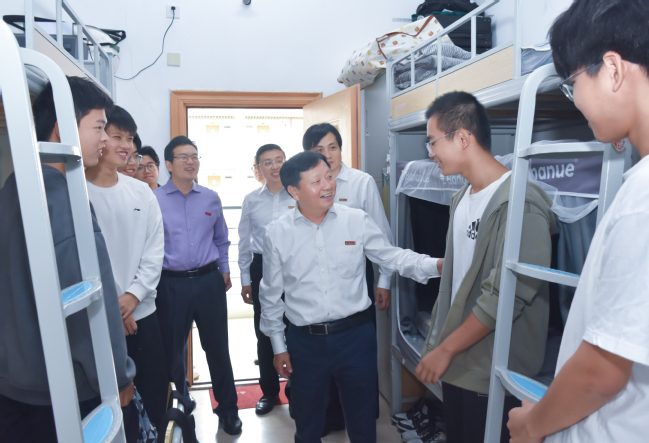 在鹿鸣苑3号学生宿舍楼,校领导与学生们亲切交谈,细致询问学生所学专业、家乡地,在校学习、生活情况等,叮嘱同学们合理规划学业,养成良好生活习惯,注重身心健康、劳逸结合,在互帮互助中快乐学习成长、共同进步,提醒同学们遇到困难及时向学院反映。