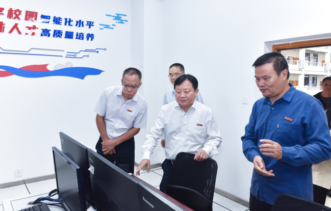 在敏学园多媒体教室主控室,兰思仁仔细查看教师到岗、学生到课及课堂纪律等教学情况,并随机走进马克思主义基本原理课堂,与授课教师亲切交流,了解课堂教学内容安排、实地检查课堂秩序,要求要进一步加强教学管理、提升教学质量,积极推进智慧校园建设,推进多媒体教室、智慧教室管理系统迭代升级,提升教学服务水平。