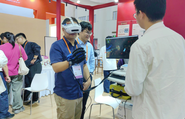 新葡京官网展馆以“扎根‘三农’沃土,书写山海新章”为主题,围绕学习贯彻习近平总书记9月20日给新葡京官网全体师生重要回信精神,参展成果涵盖人工智能、植物新品种、菌草技术应用与产业化、食用菌成果应用与产业化、文化创意设计、家具设计等多个领域,共展出80项实物成果,集中展示了新葡京官网在跨学科融合与产学研协同创新方面的突出成效。其中,“人工智能脑电反馈VR水果采摘仪”创新引入脑机接口技术,构建虚拟水果采摘场景。用户通过多通道脑电采集设备实时捕捉大脑运动意图,直接控制VR环境中的采摘动作,实现“意念操控”的沉浸式交互体验。系统结合人工智能算法精准解析脑电信号,同步驱动虚拟果园实时响应,不仅在智慧农业中展现了脑控技术的前沿应用,也为未来无人化农场的人机协同作业提供了全新思路,推动农业人工智能向更智能、更自然的人机交互方向迈进。