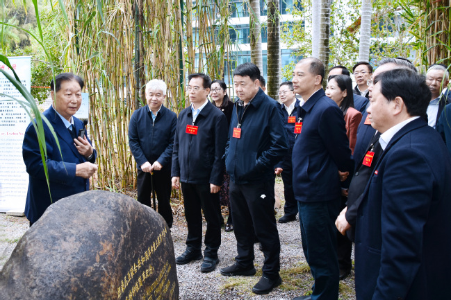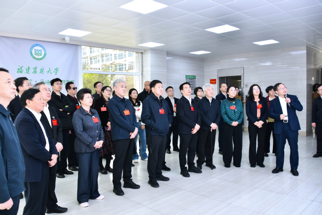 校领导代表新葡的京集团350vip8888官网对全国人大代表的到来表示欢迎,感谢代表们对学校建设发展的关心和指导,并简要介绍了学校在学科建设、人才培养、科技创新和社会服务等方面所取得的成效。多年来,学校始终牢记嘱托、感恩奋进,发挥学科特色与人才优势,做大做强林学、植物保护两个一流培优学科群,全力争创国家“双一流”建设高校;坚定不移实施“人才强校”战略,强化高水平科研成果产出,以第一作者或通讯作者单位在CNS国际三大顶刊上发表19篇论文;主动服务现代农业产业发展,在菌草技术、茶学、竹材、银耳、蜂学、兰科植物等十余个百亿级千亿级产业领域取得全国领先的“单项冠军”成果;加强高能级平台建设,全力推动高端科研重器(冷冻电镜)落地,促进创新成果持续涌现。校领导希望代表们一如既往地关注和支持学校发展,学校将以此次视察为契机,进一步聚焦国家重大战略和区域发展需求,坚持以立德树人为根本,以强农兴农为己任,统筹推进教育科技人才一体化发展,强化有组织的科研,加强关键核心技术攻关,加快推动科技成果转化,促进产学研用深度融合,培养更多高素质农林人才,以科技创新塑造产业发展新优势,为推进乡村振兴、建设农业强国作出更大贡献。