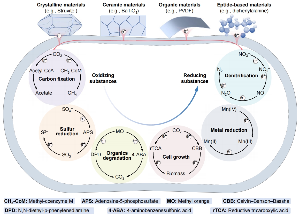 图3. 代表性压电营养型研究中的材料类型和代谢类别。