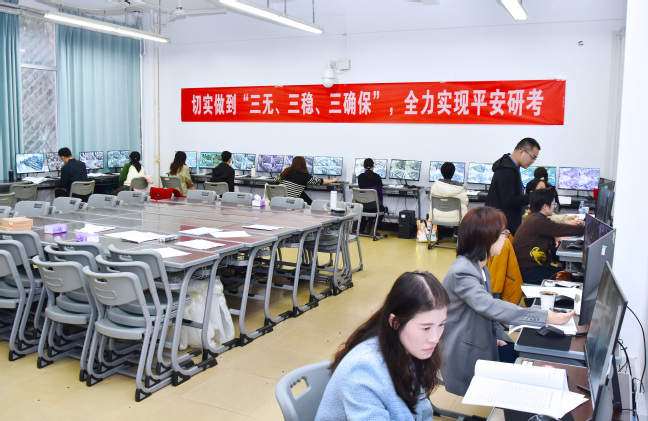校领导指出,硕士研究生招生考试工作是重要的国家教育考试,事关党和国家育人选才,事关广大考生切身利益。相关单位及考务人员要提高政治站位,充分认识研究生招生考试的重要性,高标准、严要求做好各项考务工作。一要精细考务组织,确保高效有序。适当提前安检时间,及时告知每位考生,提醒考生合理规划时间,适度提前到达考点,避免集中排队等候。监考人员在开考前要仔细核对并熟悉本考场考生名单及照片信息,便于快速识别、审核与引导,确保入场高效有序。二要严肃考风考纪,坚持公平公正。坚持正向引导,加强考场管理,严肃考场纪律,营造诚信应考的良好氛围,确保考试公平公正。三要加强人文关怀,强化服务保障。持续暖心护航,密切关注考生状态,做好应急处置工作,及时回应合理需求,用心用情做好考生服务保障,确保顺利实现“平安研考”目标任务。