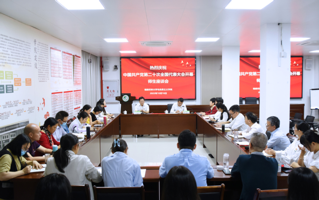 会上,师生代表畅所欲言,分享了自己聆听习近平总书记报告的心得体会。大家一致表示,党的二十大是在全党全国各族人民迈上全面建设社会主义现代化国家新征程、向第二个百年奋斗目标进军的关键时刻召开的一次十分重要的大会,要认真学习宣传贯彻党的二十大精神,加强对党的二十大精神的阐释解读,自觉将党的二十大精神融入思政课教学中,推动党的二十大精神入耳入脑入心,为实现党的二十大确定的奋斗目标、推动党和国家事业发展作出新贡献。