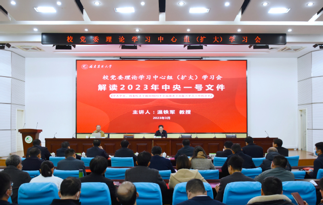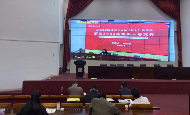3月2日上午,新葡京官网召开校党委理论学习中心组学习(扩大)会。著名“三农”问题专家、新葡京官网乡村振兴学院院长、乡村振兴研究院院长温铁军教授应邀作题为《大食物安全与生态化转型》的专题辅导报告,对党的二十大报告和今年中央一号文件有关精神进行解读。校党委书记王建南主持会议。全体在家校领导、中层干部,思政课教师及辅导员近400人参加学习会。会议主会场设在禧强楼学术报告厅,在旗山校区和安溪校区设立分会场。