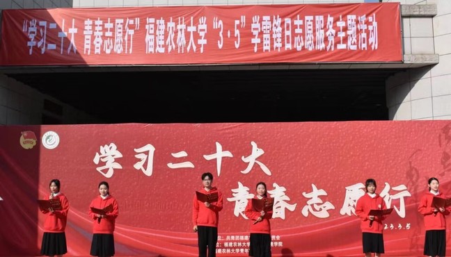 主题活动现场,校团委与仓山区团区委、建新镇政府共同签订三方共建协议,与会领导、嘉宾为进社区志愿服队授旗,目前已与29个社区达成合作意向,进一步推动学雷锋志愿服务活动的开展,把学雷锋活动融入日常、化作经常。活动现场,还特邀全国青联委员、省青联生态服务团团长方垂弘开展《学思践悟二十大 奋斗青春志愿行》的主题团课。他用15年志愿服务经历,分享了当代新青年如何让学雷锋志愿服务更精彩的故事。